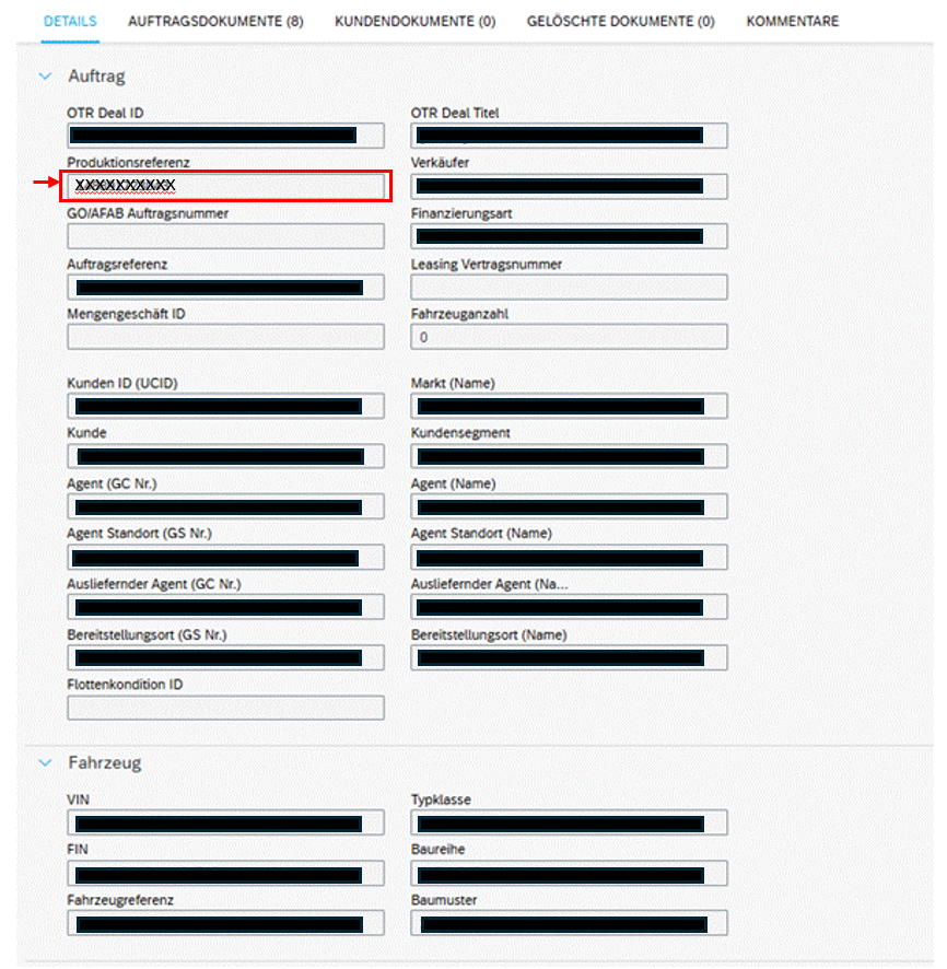 Bei der Bestellung der Loyalitätszugaben muss für jeden Artikel ein ID-Check durchgeführt werden. Hierfür muss eine gültige Order-ID/Produktionsreferenz (der Fahrzeugbestellung aus dem OTR-System) und Order Year im Warenkorb geprüft werden. Erst dann ist der Bestellabschluss möglich.